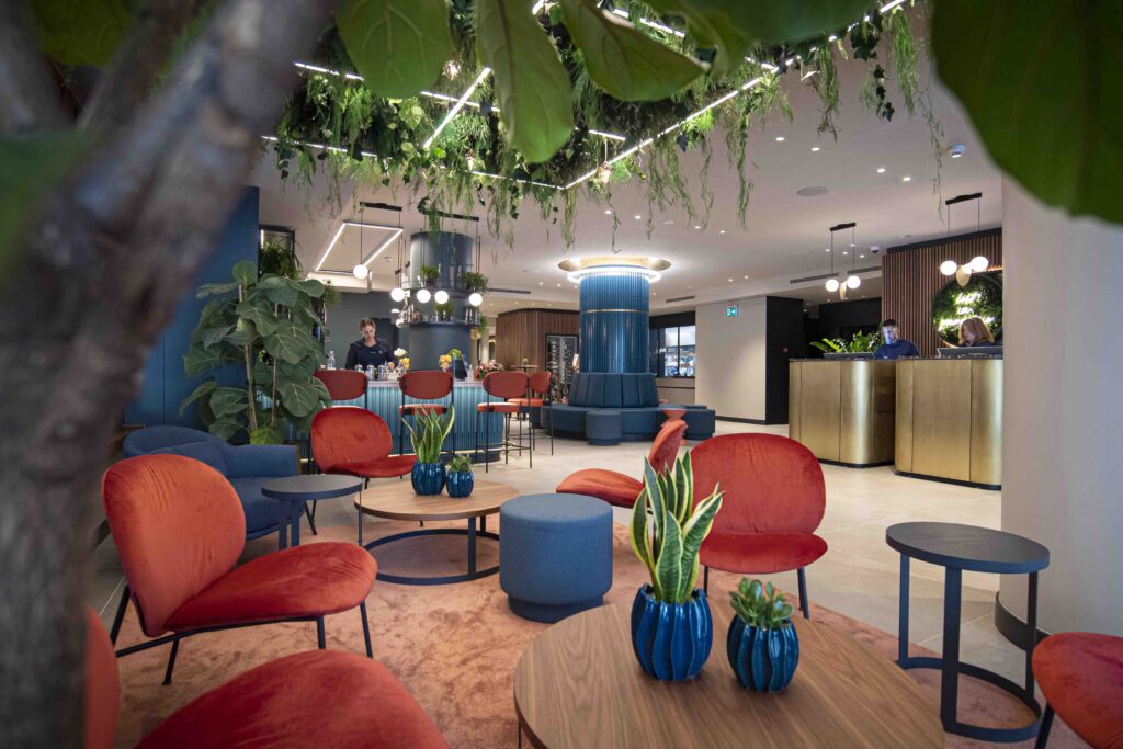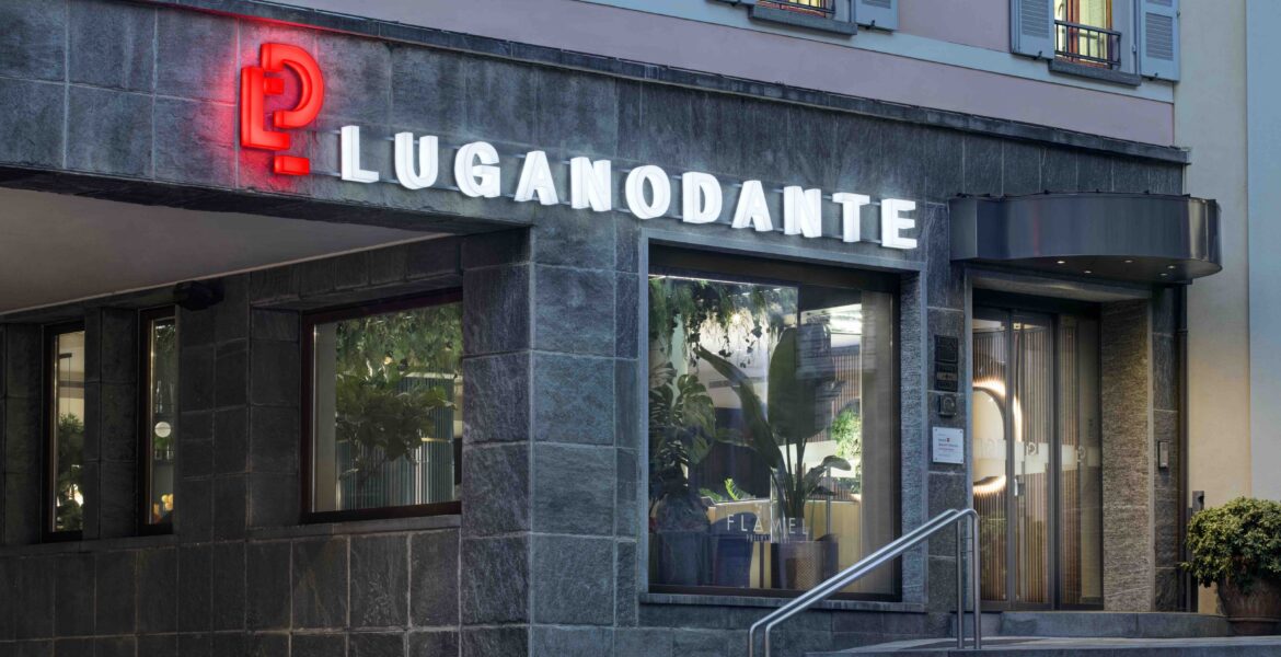 Here is the new Lugano Dante, redesigned by the creative genius of Architect Giovanni Franceschelli. New starting from the name. Breaking with the rules of the classic “hotellerie”, it presents itself as a welcoming open space, where the boundaries between hotel and clientele are blurred by linking the two dimensions. An empathetic, extrovert, vibrant landmark for the social and cultural life of the city. The hotel is attractive for the Lugano residents, occasional patrons and, of course, foreign tourists.