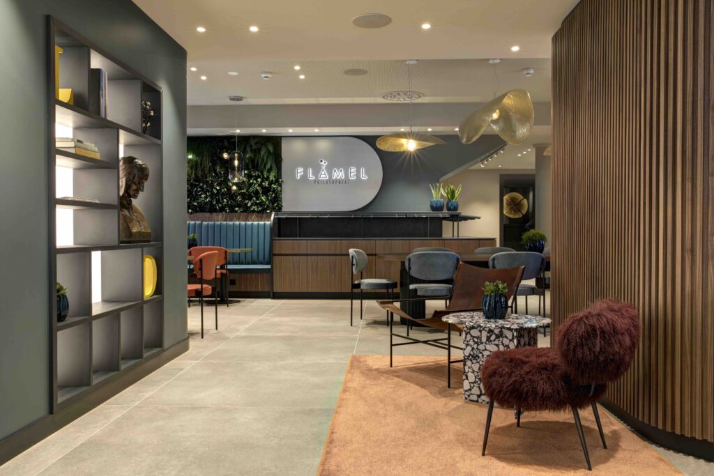 Lugano lacked such an environment: a lounge open 24 hours a day, seven days a week. A living room that pampers and excites, thanks also to the new catering concept that makes Lugano Dante a unique place in all of Switzerland. Inspired by the world of alchemy, the hotel has created the Flamel, Bar Bistrot and much more. Not simple drinks but sensory experiences based on the “Mixology” of local ingredients. Like true alchemists, the bartenders offer tempting blends at the complete service of the palate and spirit of the person, preparing them daily in the hotel’s LAB cocktail. The result is always magical, thanks to the calibrated mix of fragrances from the Alpine region and the more distinctly oriental ones.
