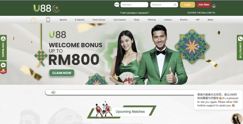 - U88 – Make your first deposit and get extra bonus up to RM800 (For New Member Only).