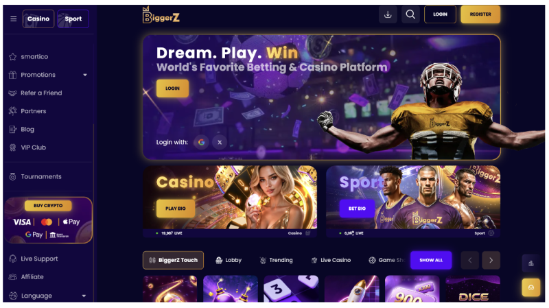 BiggerZ processes crypto withdrawals in under 10 minutes with zero site fees and no withdrawal limits. Players receive the full amount they request. This is a serious advantage for anyone who values speed and wants their winnings in hand, not stuck in pending status. BiggerZ accepts 12 major cryptocurrencies: BTC, ETH, USDT, SOL, XRP, DOGE, LTC, BNB, ADA, TRX, USDC, and BCH. This selection covers most crypto wallet players already use. The 5% daily rakeback with zero wagering requirements is one of the most payout-friendly ongoing promotions in the industry. You get real money back every day, no strings attached. New players at BiggerZ can claim a casino welcome bonus of 150% up to 1,500 USDT. The sportsbook welcome is a 100% free bet up to 500 USDT. High rollers get a 50% first-week lossback. These offers are backed by a full casino and sportsbook covering 37 to 45+ sports, 11 esports, and 400+ markets on major events. BiggerZ holds an Anjouan license and carries a Casino Guru Safety Index of 8.0 out of 10.