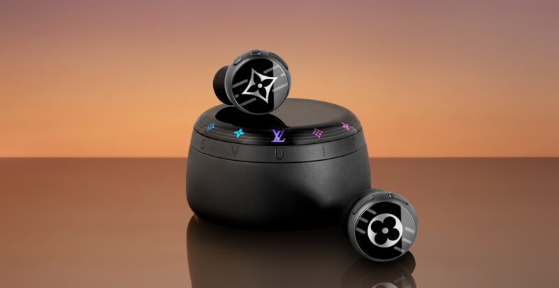 Their design is the most striking and unique feature of the LV Horizon earphones. It is something previously unknown: the product comes in a round polished stainless steel case, inspired by the brand’s tambour watch from the same series, stylish and jazzy. The charging case is illuminated with LEDs and showcases a mesmerising display of gradient colours, creating a stunning kaleidoscope effect, as it indicates battery levels through an electrifying dance. The earphones themselves are made from lightweight aluminium and adorned with a layer of polished sapphire glass that sits over the flower of LV signature monogram pattern. The earphones come in a range of colours, including golden, pink, black, and a mysterious blue-to-violet gradient.