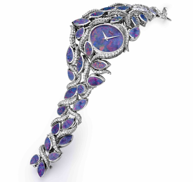 Piaget High jewelry watch. White gold. 275 brilliant-cut diamonds (4.69ct). Opal dial and plates 1972